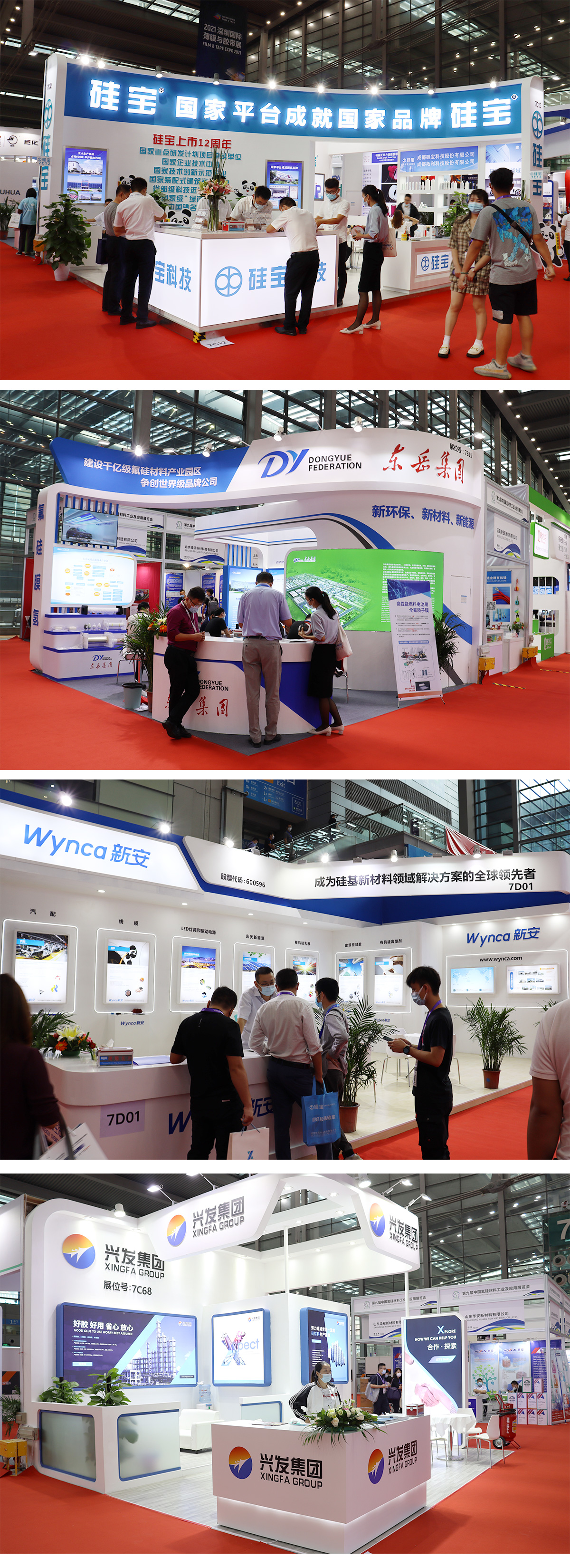 本屆四展聯(lián)動盛大展會是由中國氟硅有機(jī)材料工業(yè)協(xié)會攜手勵展博覽集團(tuán)舉辦的、旨在加快氟硅產(chǎn)業(yè)創(chuàng)新發(fā)展的專業(yè)性展會,并與“深圳國際薄膜與膠帶展”、“2021深圳國際全觸與顯示展”、“深圳國際膠粘帶展”等多個氟硅下游相關(guān)展會聯(lián)合展出,總面積6萬平米,展商450余家,參展買家超過4萬人。