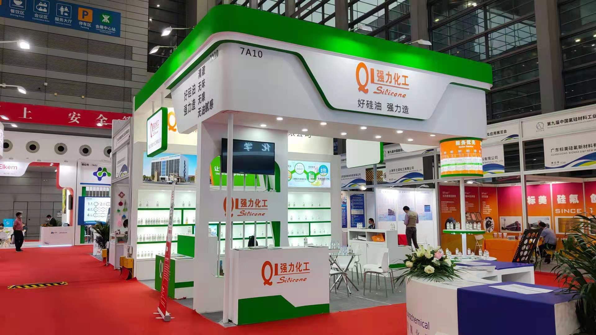展會開幕式于19日10時正式拉開序幕,強(qiáng)力化工展位獨特的設(shè)計風(fēng)格以及別具一格的展架就已經(jīng)吸引了不少觀展人員的駐足。