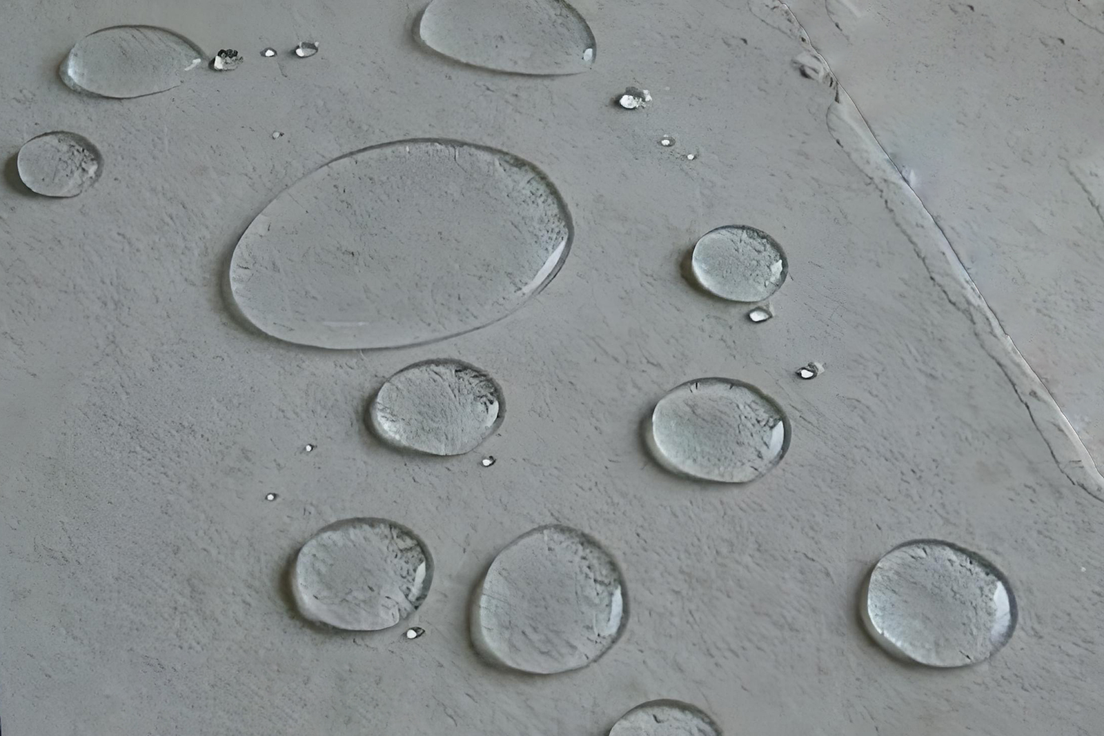 通過滲透基材形成網(wǎng)狀硅樹脂膜,表面產(chǎn)生「荷葉滾水珠」效應(yīng),阻止液態(tài)水滲透,同時(shí)允許水蒸氣逸出,實(shí)現(xiàn)防水與透氣的動(dòng)態(tài)平衡。