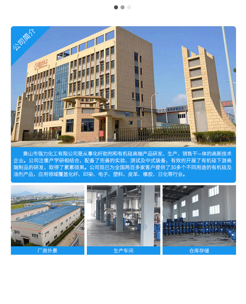 黃山市強力化工有限公司是一家專注于有機硅新材料,集研發(fā)、生產與銷售為一體的綜合性高新技術企業(yè)。公司已是有機硅行業(yè)內較為知名的品牌,傾力于打造高品質有機硅產品:二甲基硅油、乙烯基硅油、氨基硅油、乳化硅油、羥基硅油、含氫硅油與紡織品硅油等。砥礪前行,踔厲奮發(fā),強力純硅油,更高技術,更好硅油。