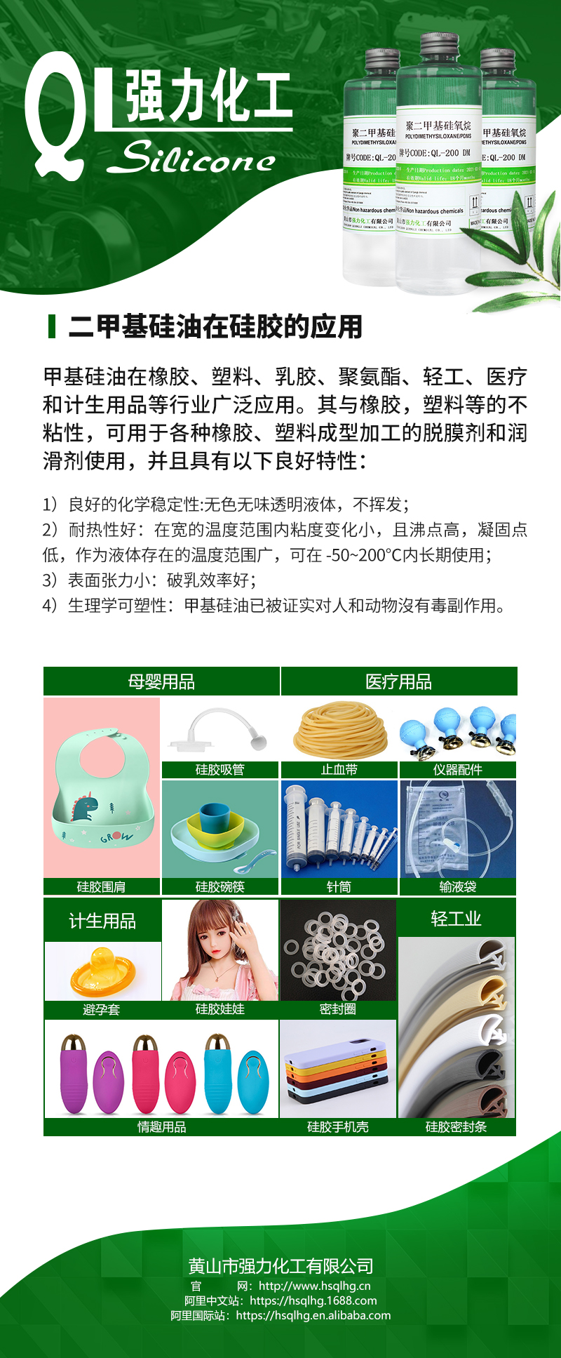 黃山市強(qiáng)力化工有限公司是一家專注于有機(jī)硅新材料,集研發(fā)、生產(chǎn)與銷售為一體的綜合性高新技術(shù)企業(yè)。公司已是有機(jī)硅行業(yè)內(nèi)較為知名的品牌,傾力于打造高品質(zhì)有機(jī)硅產(chǎn)品:二甲基硅油、乙烯基硅油、氨基硅油、乳化硅油、羥基硅油、含氫硅油與紡織品硅油等。砥礪前行,踔厲奮發(fā),強(qiáng)力純硅油,更高技術(shù),更好硅油。