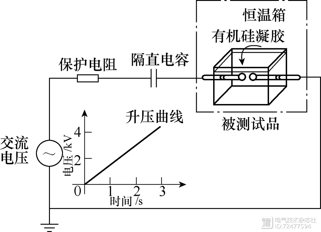 研究人員測試了有機(jī)硅凝膠的熱特性,分析了溫度對有機(jī)硅凝膠工頻耐電特性的影響機(jī)制。溫度升高時(shí),有機(jī)硅凝膠的自由體積增大,分子鏈段運(yùn)動加??;且有機(jī)硅凝膠內(nèi)部載流子遷移率增大,漏電流增加,故溫度升高后,有機(jī)硅凝膠的擊穿電壓降低。